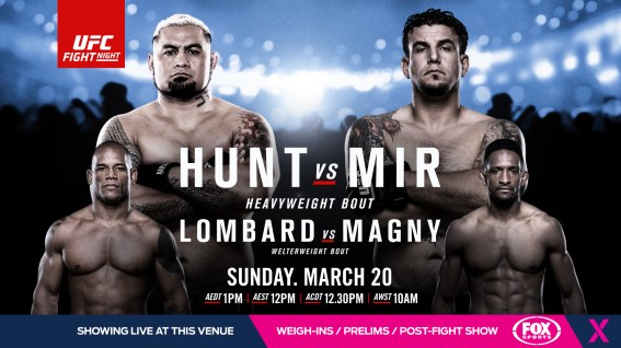 The UFC returns “down under”, as two legendary heavyweights are set to collide. Former UFC Heavyweight Champion Frank Mir looks to get back into the win column, after coming up just short against Andrei Arlovski. The loss would end a two fight win streak, one in which was surprising given Mir’s age (36) and the fact that he had lost four consecutive fight prior. As for Mir’s opponent, that would be in the form of the “Super Samoan” Mark Hunt, who is coming off a TKO win over Antonio Silva. Hunt made quick work in the rematch, avoiding replicating the first fight, which I’d say was the greatest heavyweight fight ever (Antonio Silva was on the juice though).